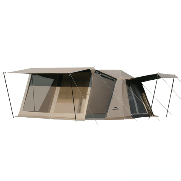 这款NatureHike挪客屋脊13自动速开帐篷很适合家庭露营或户外聚会,拥有约27平方米的宽敞空间,设有两个独立的卧室和一个舒适的大厅,有足够的活动区域来休闲、聚餐或品茶。搭建过程也极为简便,采用一体式设计的自动支架,只需轻轻一拉,帐篷便能迅速展开,省去繁琐的组装步骤,让你可以更快地投入到户外活动中。