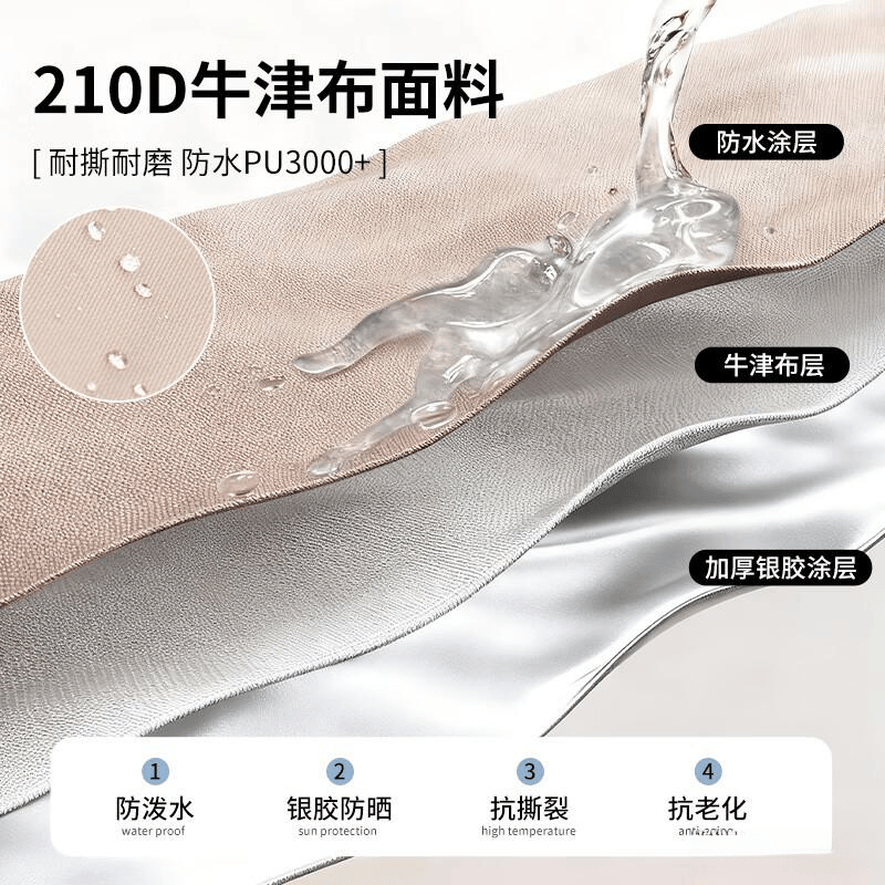 同时,它的出色防晒和防水性能,让你在各种天气情况下都能感受到舒适与安心。采用高质量的210T灰胶PU面料,具备防水2000MM能力,不论艳阳高照还是细雨绵绵,都能有效防护,让你无后顾之忧。