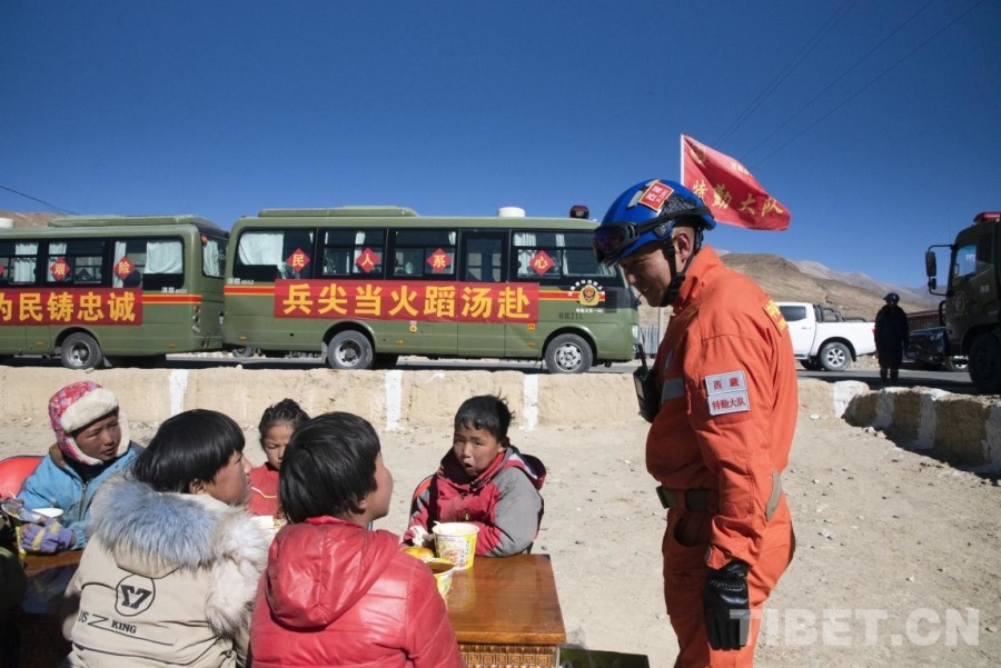 图为在定日县曲洛乡措昂村受灾安置点,森林消防大队为受灾小朋友搭建起的临时“小饭桌”,为村中受灾群众提供热乎的便餐。(摄于2025年1月8日) 摄影:赵振宇