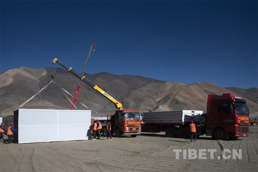图为地震发生第三日,在定日县长所乡森嘎村全国各地支援而来的活动板房开始搭建,10分钟一间的“中国速度”正在这里上演(摄于2025年1月9日) 摄影:赵振宇