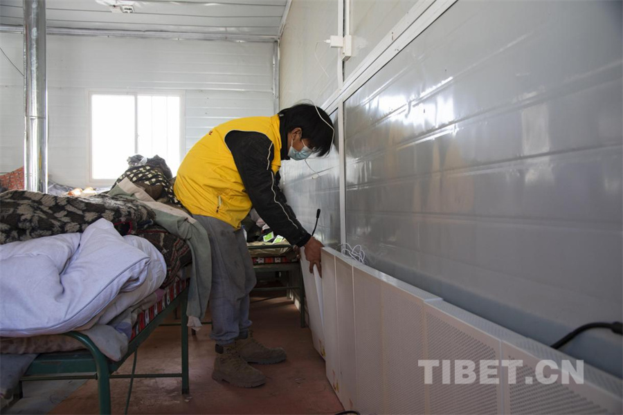 图为地震发生第五日,在定日县长所乡古荣村受灾群众安置点内,工作人员正在安装电暖器 (摄于2025年1月11日) 摄影:赵振宇