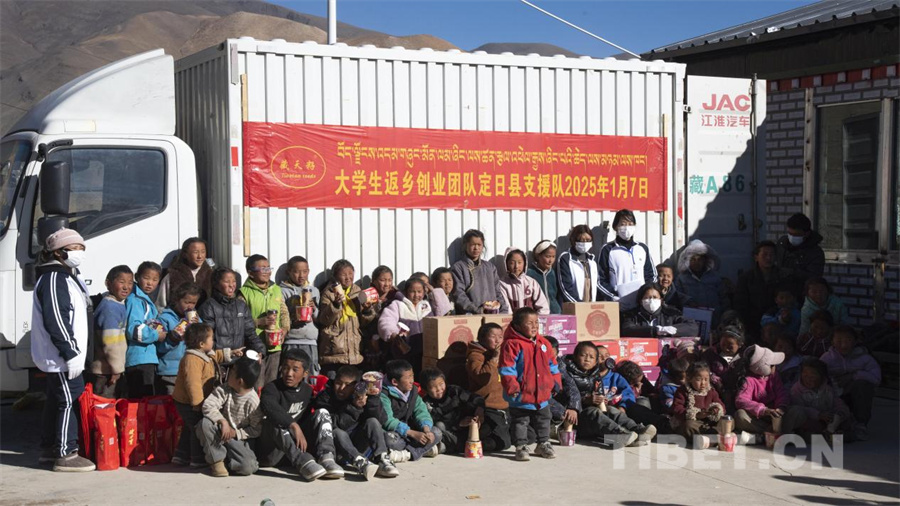图为市当雄县乌玛塘乡巴嘎村“00后”返乡创业大学生自发赴定日县捐赠物资(摄于2025年1月8日) 摄影:赵振宇