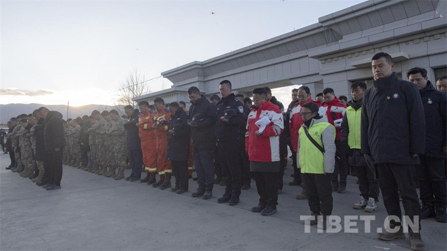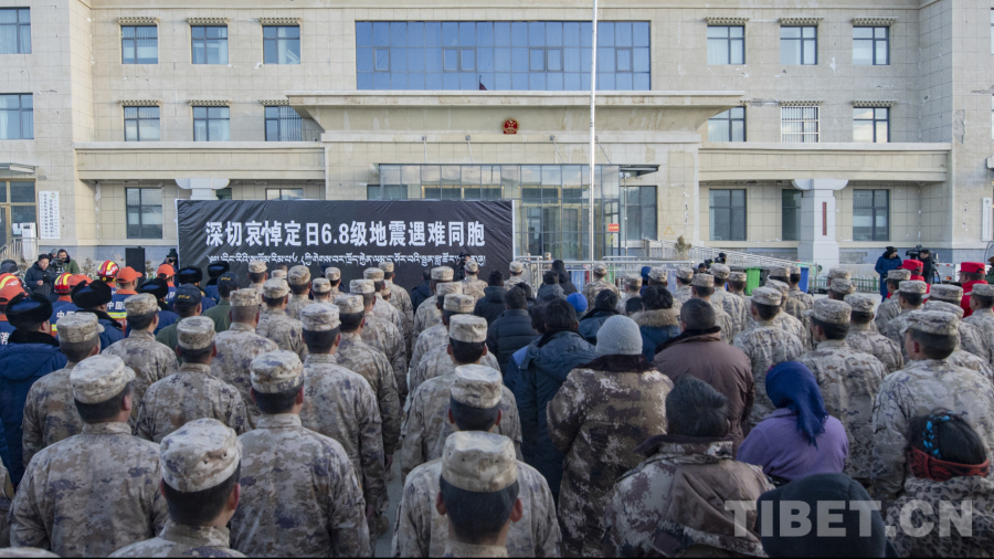 图为西藏定日6.8级地震遇难同胞悼念仪式在受灾最严重的定日县长所乡举行(摄于2025年1月13日)摄影:赵振宇