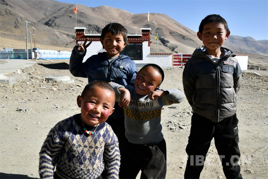 图为定日县长所乡古荣村的受灾儿童在新居前笑容更加灿烂(摄于2026年1月5日)摄影:赵振宇