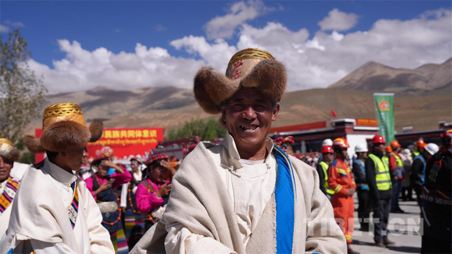 图为西藏定日6.8级地震灾后重建民房首批入住仪式现场,群众笑得格外灿烂(摄于2025年8月15日)摄影:德吉卓玛