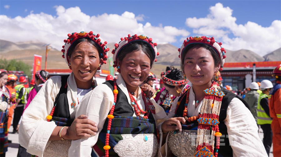 图为西藏定日6.8级地震灾后重建民房首批入住仪式现场,受灾群众盛装出席(摄于2025年8月15日)摄影:德吉卓玛