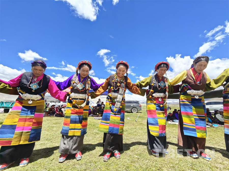 图为当望果节遇上乔迁之喜,萨迦县雄麦乡扎果村妇女载歌载舞,欢庆乔迁与望果节的双重喜悦(摄于2025年 8月16日)摄影:次旦拉姆