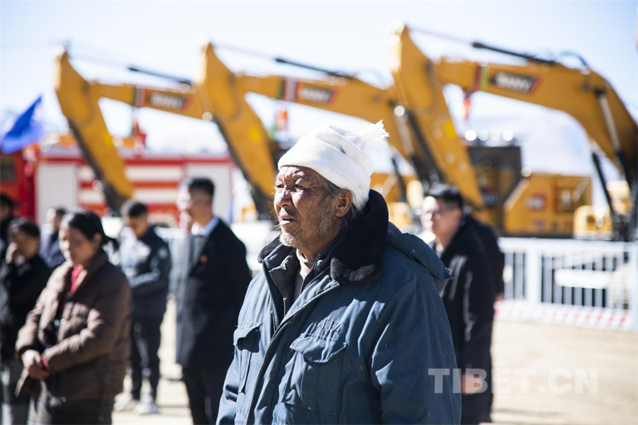 图为定日县6.8级地震8个整村推进村庄灾后恢复重建项目启动仪式在定日县长所乡古荣村举行,标志着灾后恢复重建工作启动。(摄于2025年3月3日)摄影:赵振宇